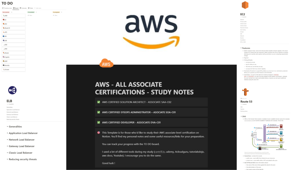 This template contains all my personal notes and some useful resources/links for the SAA-C02, SOA-C02, DVA-C01.